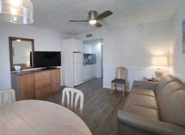 - Amenities: central air-conditioning, drip coffee maker (coffee NOT included), hairdryer in bathroom, iron and ironing board, kitchenette with a full-size refrigerator, microwave, safe and free WiFi, silverware/cookware, toaster, two burner cooktop, two flat screen satellite TV's
