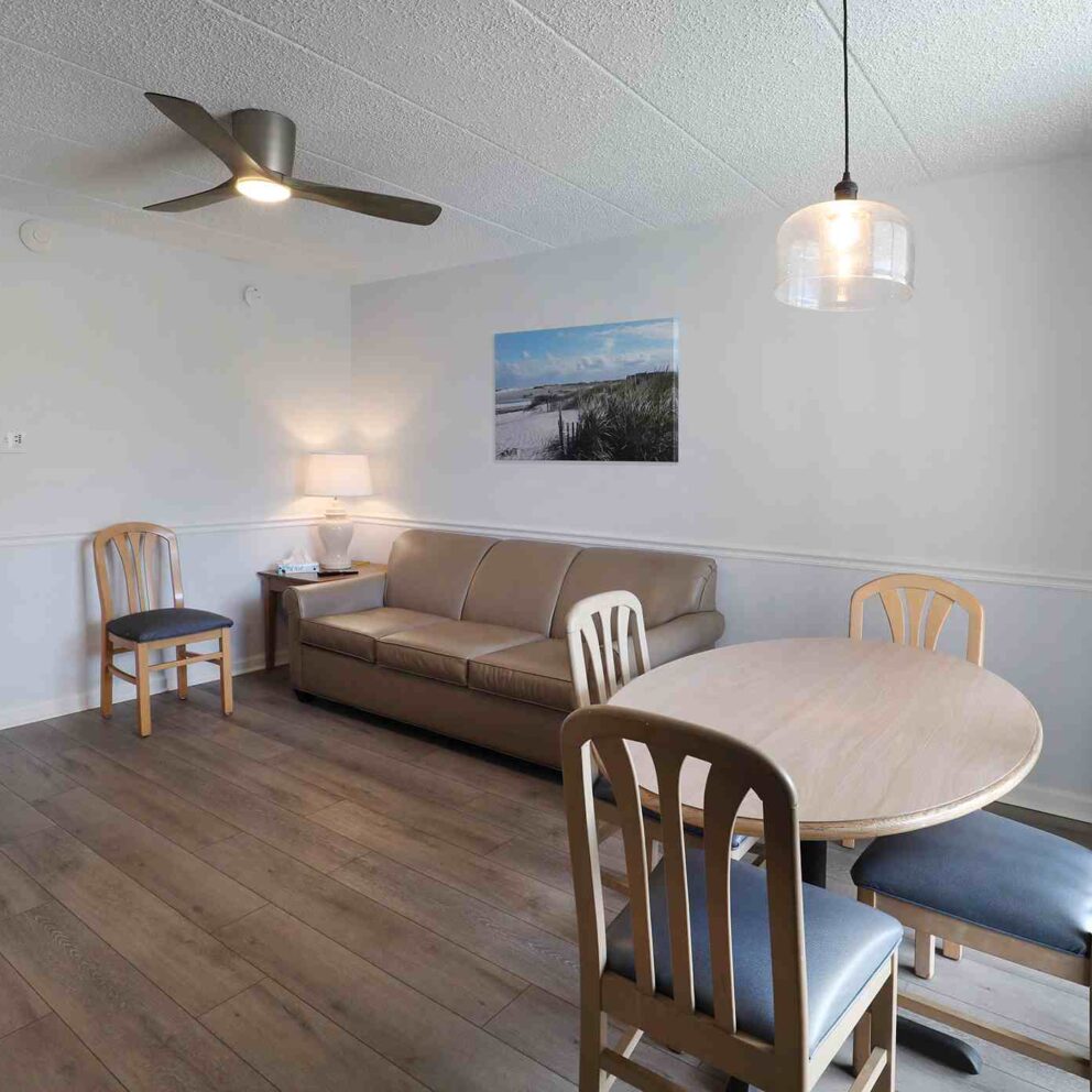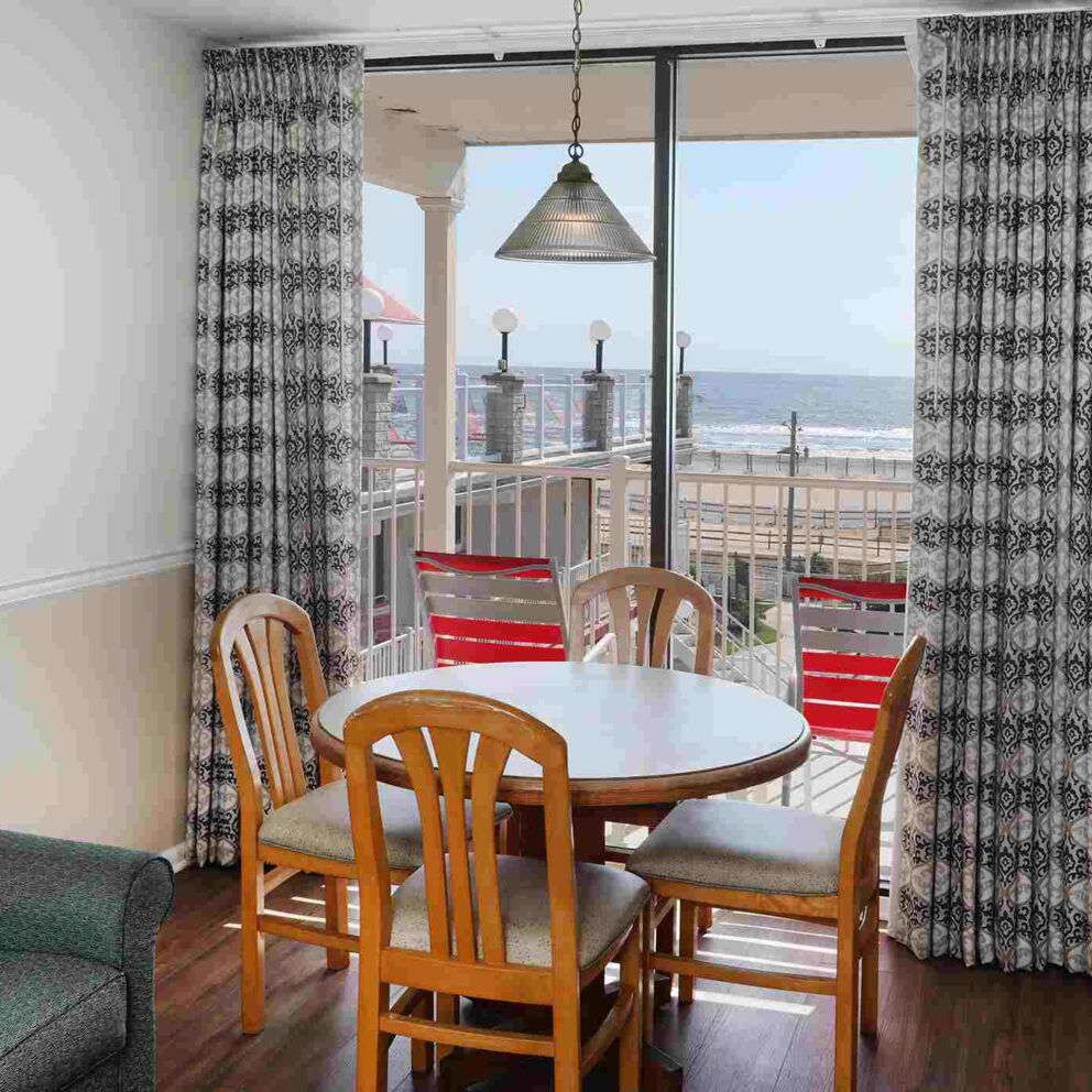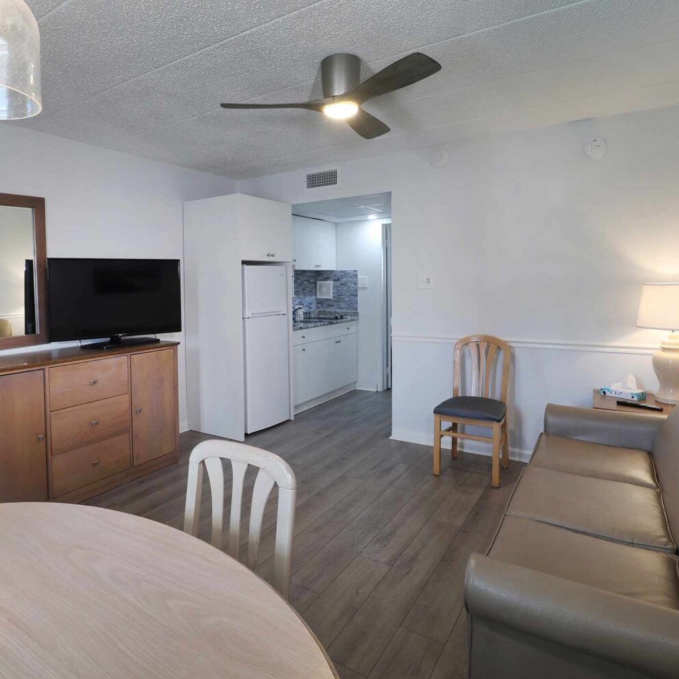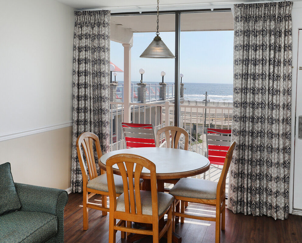 When traveling to the Jersey Shore and looking for stunning ocean views, our “BEACH SUITES” are the perfect accommodation. This two room efficiency features two queen beds in the bedroom with a queen sofa bed in the living area and kitchenette. This unit is a great option for families.
