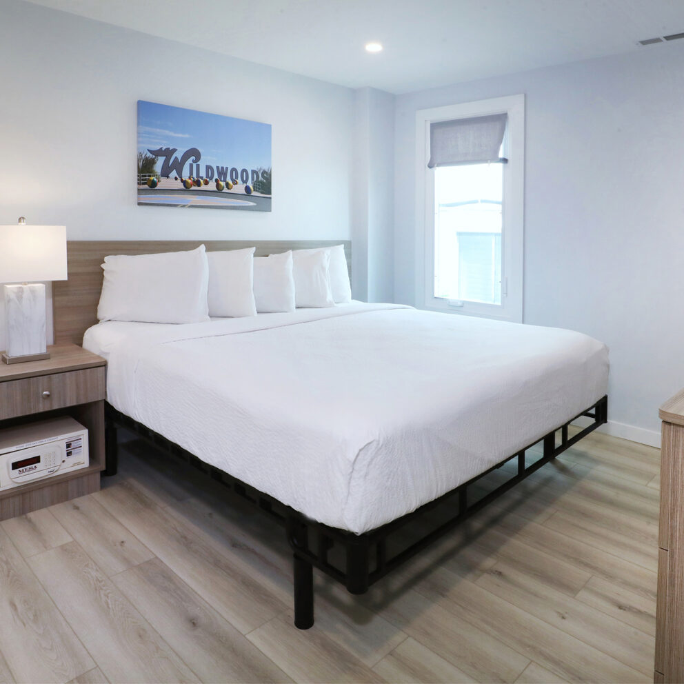 Like the convenience of your own kitchenette on your vacations? Stay in one of the Matador’s efficiency-style rooms. You won’t have the bonus of an ocean or pool view, but you’ll enjoy a more affordable place to stay and the comfort of one of the best motels in North Wildwood, NJ. Featuring two queen beds, this room is the perfect place for a family of four.