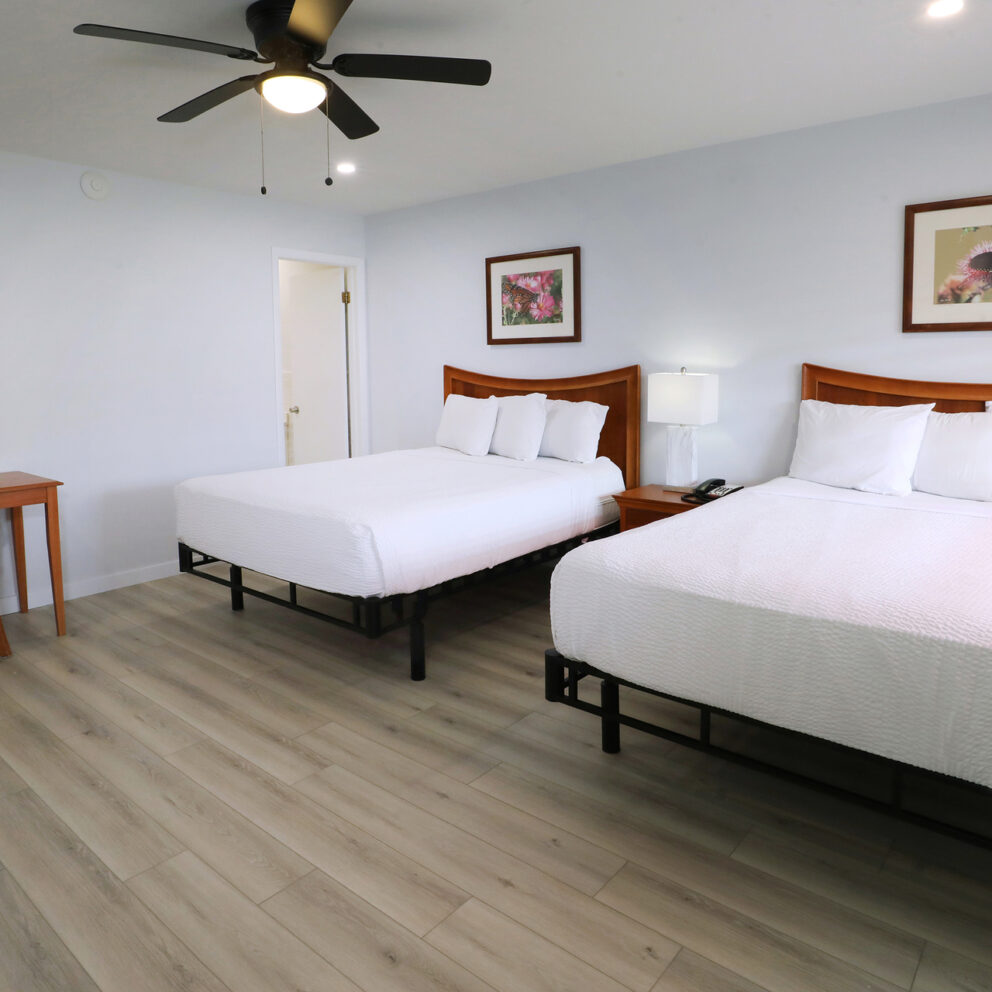 Like the convenience of your own kitchenette on your vacations? Stay in one of the Matador’s efficiency-style rooms. You won’t have the bonus of an ocean or pool view, but you’ll enjoy a more affordable place to stay and the comfort of one of the best motels in North Wildwood, NJ. Featuring two queen beds, this room is the perfect place for a family of four.